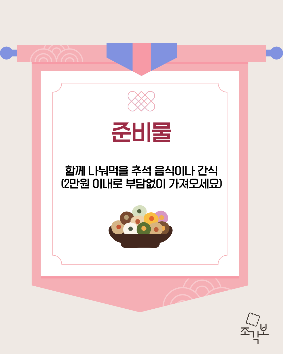 빈손으로 오셔도 괜찮아요. 조각보에서도 간단한 음식을 준비할게요! 😉