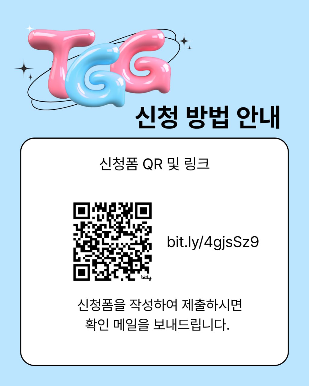 - 이메일로 신청서 사본을 받았다면 잘 접수된 것입니다. 구체적인 행사 장소는 참여자 모집이 마감된 후, 3월 27일에 신청자 이메일로 개별 공지됩니다. - TGG는 트랜스/젠더퀴어 정체성을 가진 참여자들이 일상의 경험과 이야기를 나누는 당사자 모임입니다. 따라서 원활한 행사 진행을 위해 시스젠더의 참가를 제한합니다. - 아래는 TGG 참가자들이 꼭 지켜주셔야 하는 가이드라인입니다. 신청하기 전 읽어주세요! ▶▶가이드라인 읽기: https://bit.ly/TGG_Guide