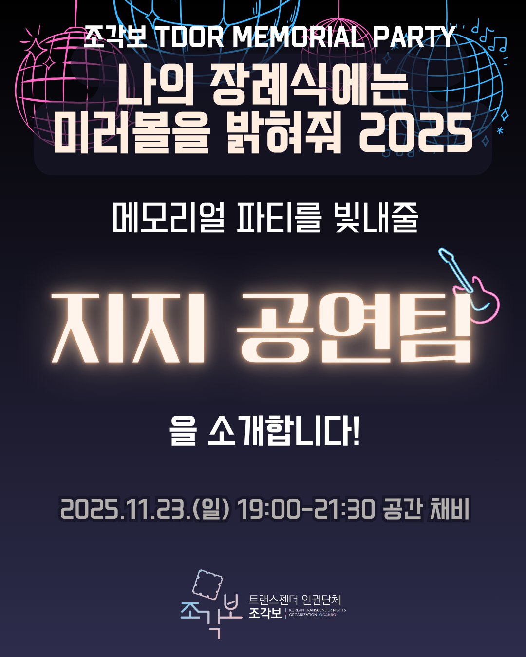 2025 트랜스젠더 추모의 날, 조각보 TDOR 메모리얼 파티에서 파티를 빛내줄 [지지 공연팀] 을 소개합니다!